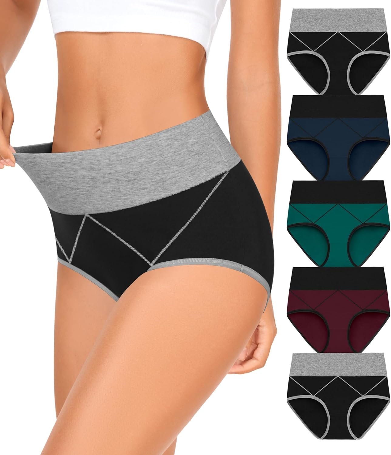 Womens High Waisted Cotton Underwear Full Coverage Soft Double-Layer Waistedband Panties (Regular & Plus Size)