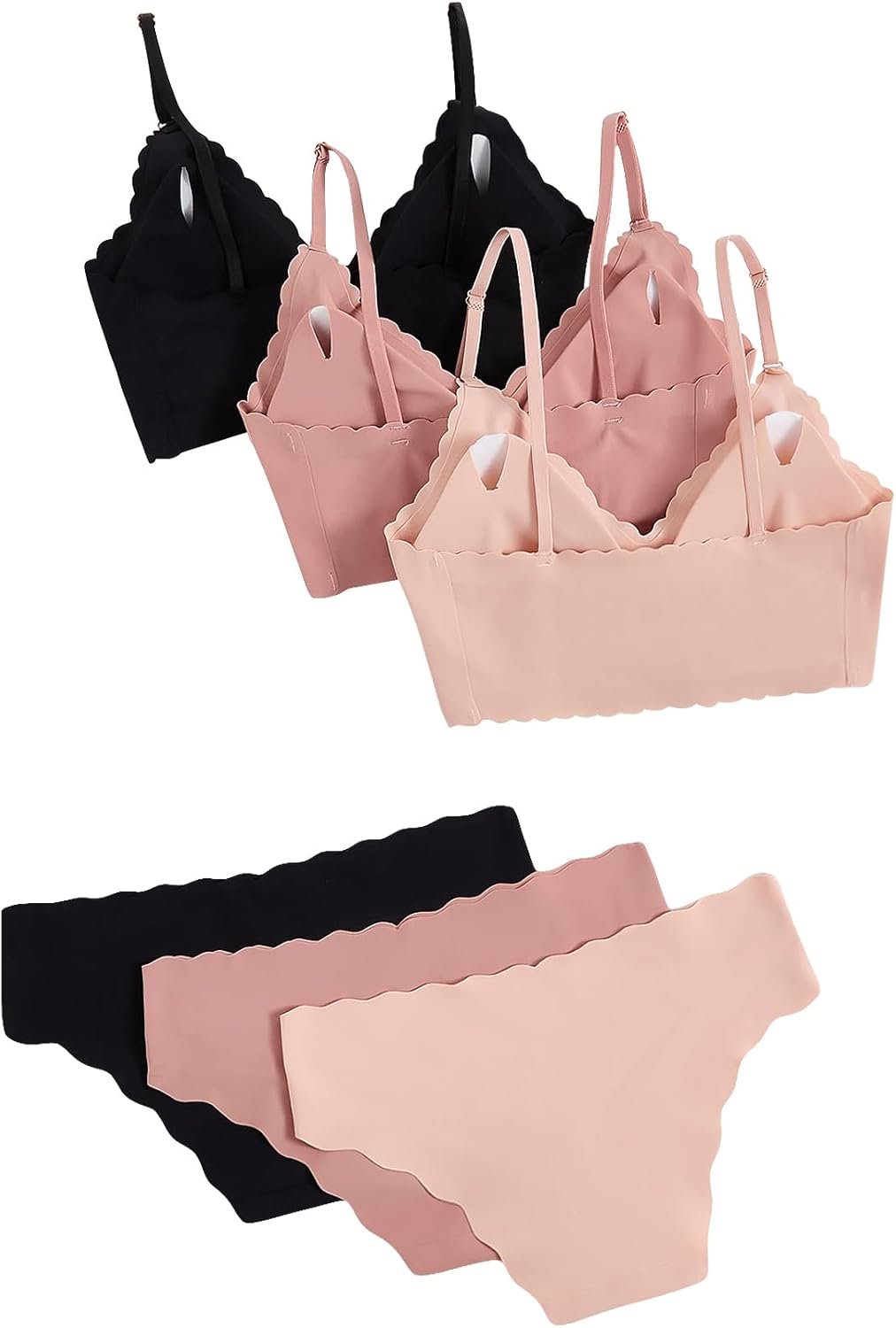 - Adjustable Straps, Removable Padding, Scallop Trim, 3 Sets Lingerie Set